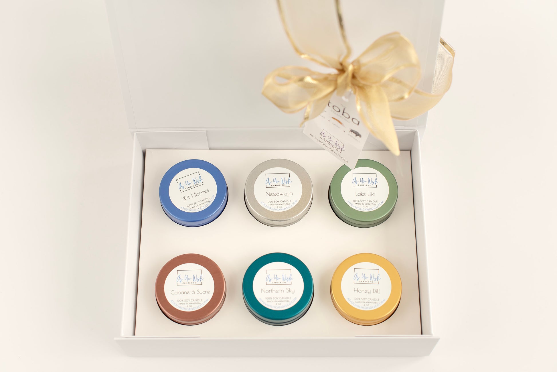 Featuring SIX of our 2 oz. mini candle tins, this carefully curated collection showcases all things Manitoba.